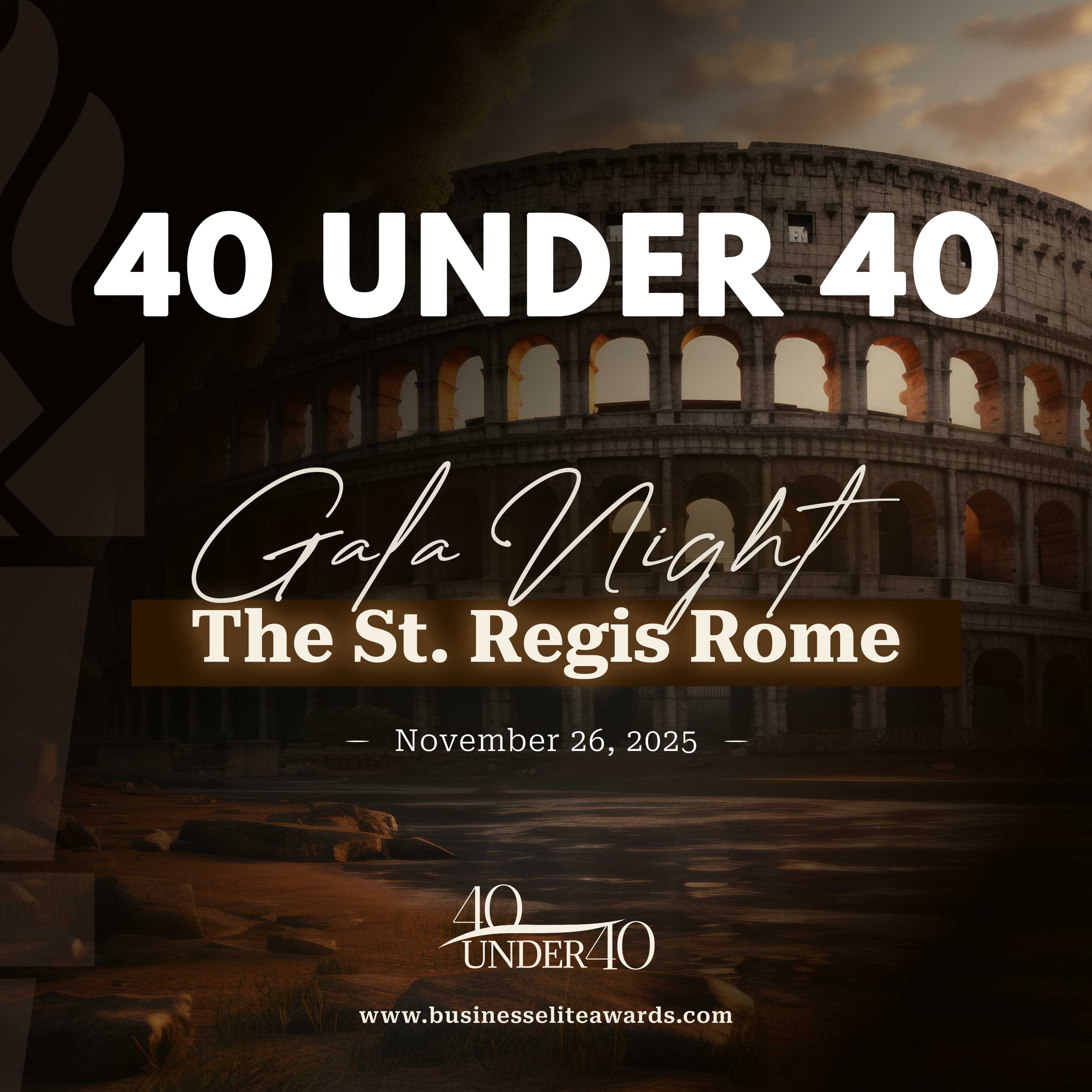 ROME, ITALY, October 23, 2025 /EINPresswire.com/ -- Business Elite Awards is proud to announce the 2025 Business Elite’s 40 Under 40 Gala Dinner, an exclusive black-tie celebration honoring Europe’s 40 most accomplished young business leaders. The event will take place on November 26, 2025, at the iconic St. Regis Rome, one of the city’s most opulent and historic venues.