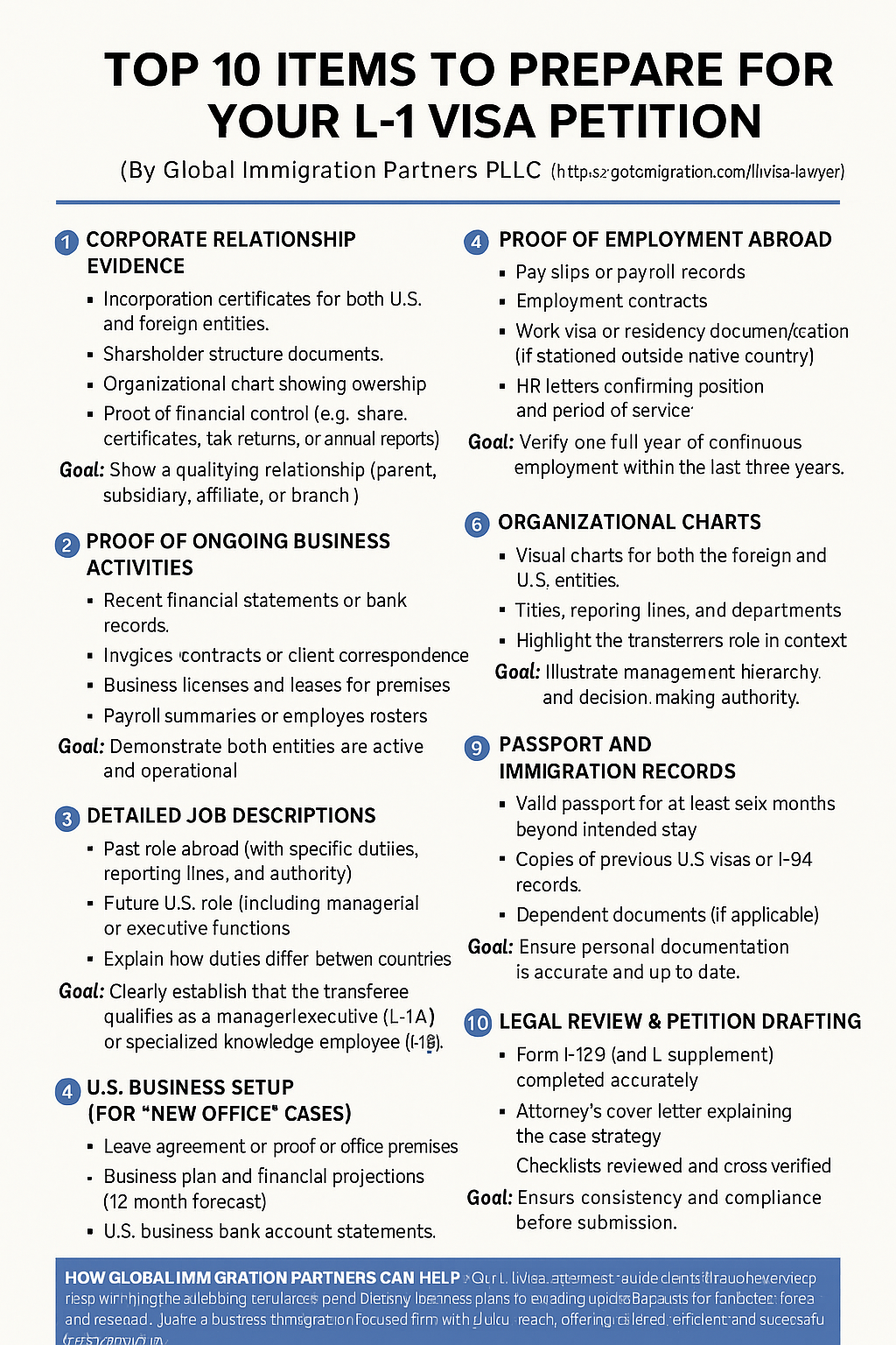 Global Immigration Partners PLLC, a leading international law firm specializing in U.S. business and investor immigration, has announced expanded legal services to help multinational companies successfully navigate the complexities of the L-1 visa process.